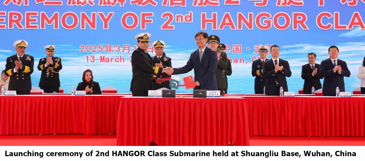 While addressing the ceremony, the Vice Chief of the Naval Staff highlighted the importance of maritime security in the prevailing geo-strategic environment of the region, as well as the Pakistan Navy’s commitment to safeguarding national interests and ensuring a safe and conducive maritime environment for all. He emphasized that Hangor Class submarines, equipped with state-of-the-art weapons and sensors, will play a pivotal role in maintaining the balance of power and maritime order in the region. Acknowledging the tireless efforts of China Shipbuilding & Offshore International Company Ltd (CSOC), he expressed satisfaction with the project’s progress and underscored that the Hangor Class Submarine Project will add a new dimension to time-tested Pakistan-China friendship.