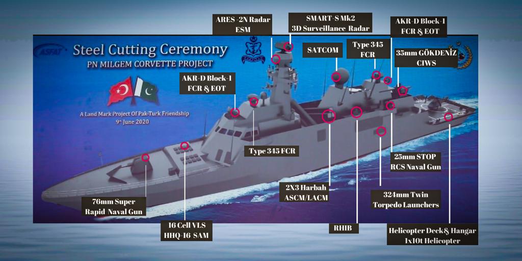 It has been decided to use the MBDA product new generation Naval Based Air Defence (NBAD) Albatros NG system instead of the HHQ-16 Medium-Range Air Defense Missile System in the corvettes to be built under the Pakistan Navy MİLGEM (PN MİLGEM) Project, the contract of which was signed between the Main Contractor ASFAT (Military Factory and Shipyard Management Inc.) and the Pakistan Ministry of Defense Production on July 5, 2018, in Islamabad and the construction activities (T0) of which was started on March 11, 2019.