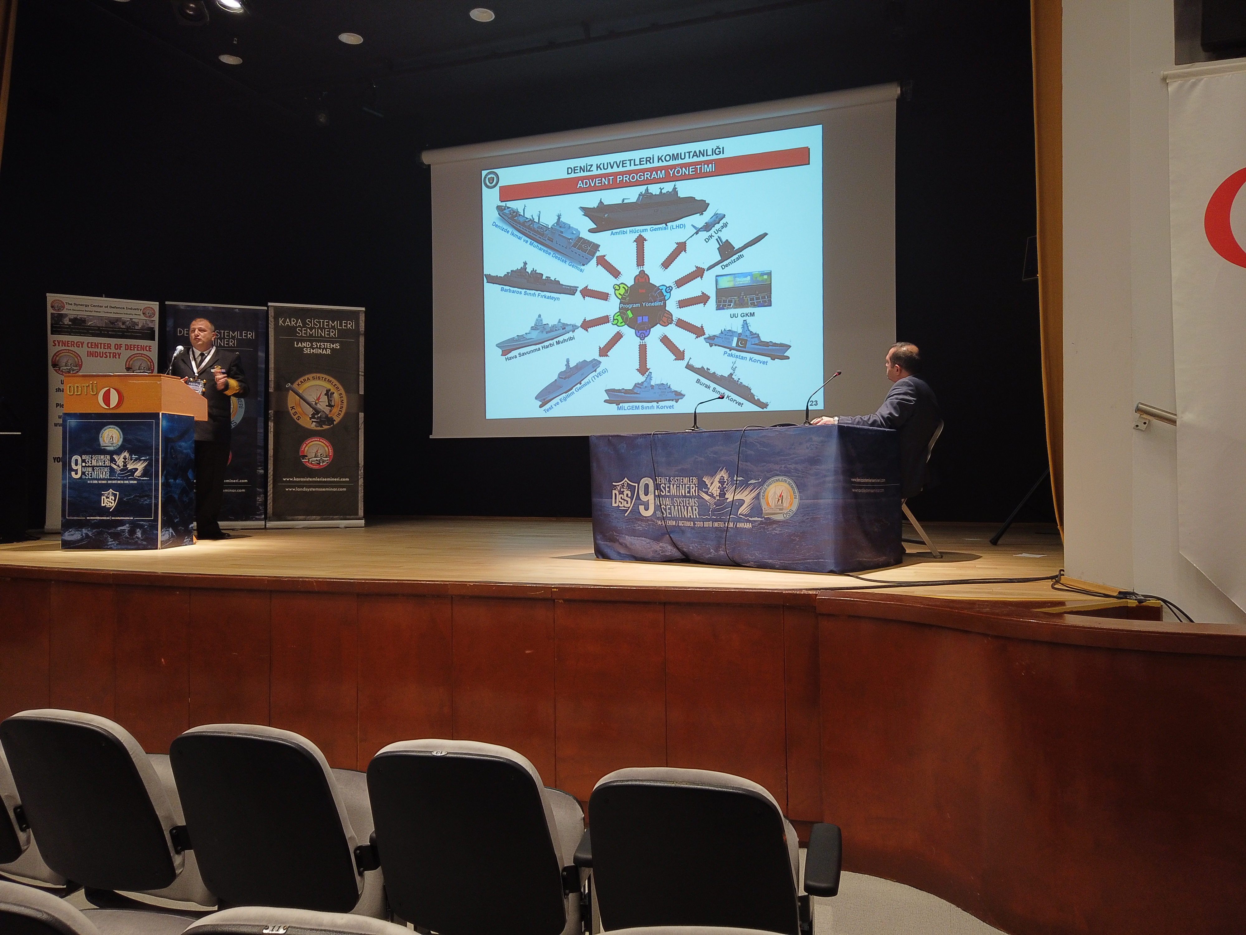 Navy Captain Cihat ERYİĞİT (Ph.D.), Head of the Systems Engineering Group at ARMERKOM/TNRCC, shared valuable information about past, present, and the roadmap of the ADVENT CMS in his presentation titled the Network Enabled Data Integrated (ADVENT) Combat Management System. ERYİĞİT stated that during the integration process of the GENESIS (abbreviation of Ship Integrated Combat Management System in Turkish) into the Gabya Class (G-Class) Frigates and the TCG Heybeliada and TCG Büyükada Corvettes built under the MİLGEM project, the Turkish Naval Forces Command started work on a new generation CMS due to the changes in both operational (Networked Capability, higher performance, shorter reaction time, fault tolerance and the need for Turkish language support) and technological (Programmability) needs. Therefore, the analysis studies for the New Generation CMS started in 2009, and between 2010 and 2014, Phase-I studies were started in the development process of ADVENT CMS under the protocol signed with Havelsan. ERYİĞİT emphasized that the studies on the ADVENT CMS were initiated with the signing of the MİLGEM 3rd and 4th ship contract in 2014 and stated that the ADVENT CMS is currently used in the TCG Kınalıada Corvette. Underlining that Network Enabled Data Integration is the most crucial feature of the ADVENT CMS, ERYİĞİT emphasized that the applications and the systems are no longer platform-oriented but task force oriented and Cooperative Engagement Capability (CEC) has been gained with ADVENT. ERYİĞİT noted that the 3rd MILGEM Corvette, the TCG Burgazada would be retrofitted with the ADVENT CMS in the near future, and the first trials on Network-Enabled Capability and Cooperative Engagement Capability (CEC) will be conducted in 2020 with the participation of the TCG Burgazada and the TCG Kınalıada Corvettes.