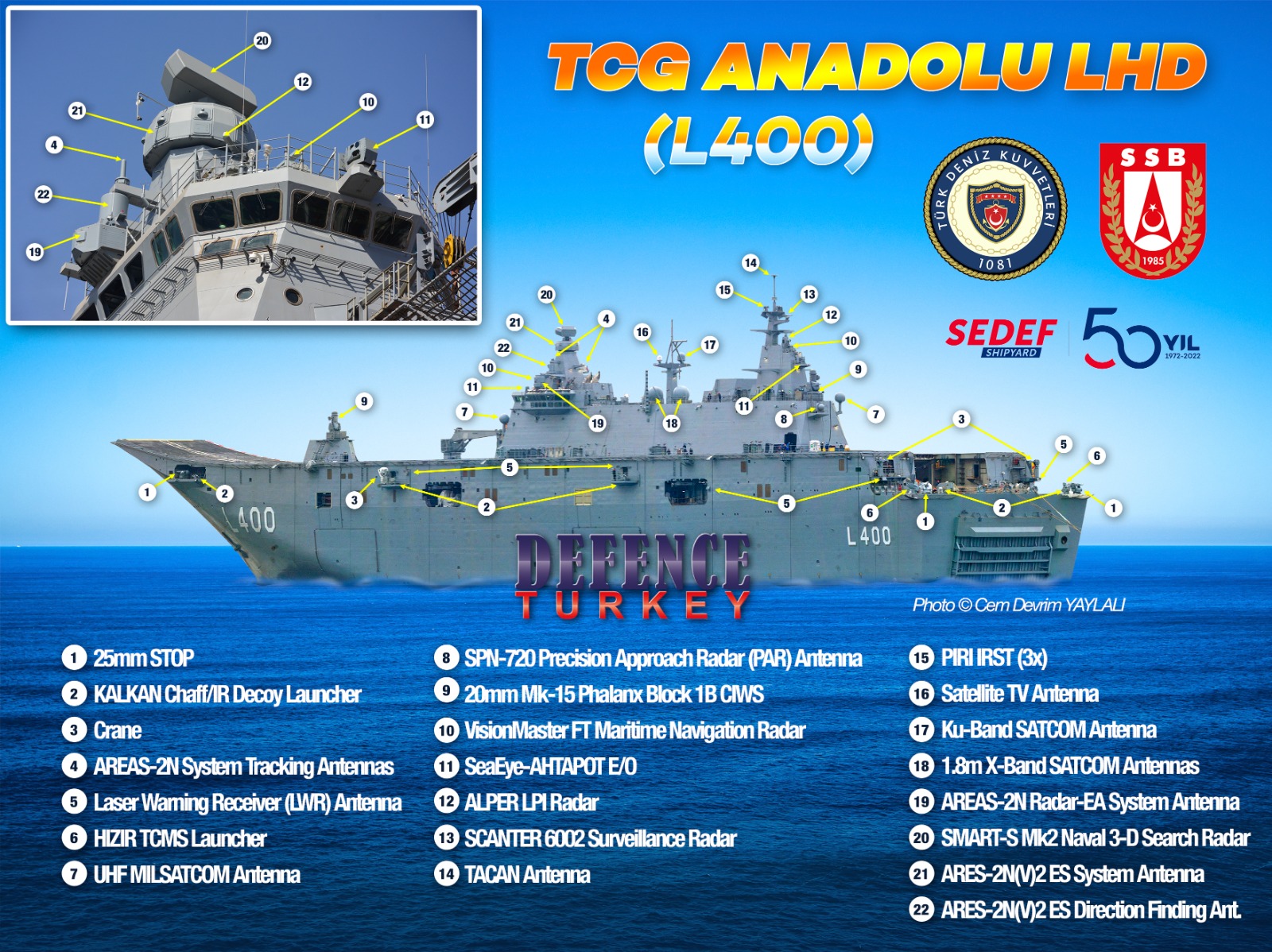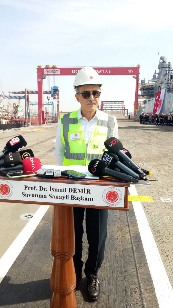 Under the Multi-Purpose Amphibious Assault Ship (LHD) Project signed on June 1, 2015, between the Presidency of Defence Industries (SSB) and SEDEF Shipbuilding Inc. (SEDEF Shipyard), TCG Anadolu (L-400) LHD was constructed with 131 subcontractor companies and 68% domestic contribution rate. TCG Anadolu, which is expected to be delivered to the Turkish Navy by the end of this year, was introduced to the press for the first time at an event accompanied by the President of Defence Industries İsmail DEMİR.
