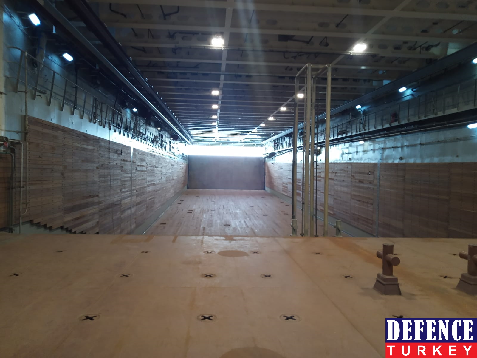 The vessel will feature a floodable well dock, which can host four LCM-1E or two Landing Craft Air Cushion (LCACs) with a single tank carrying capacity. In this context, unlike the other sister ships in service, TCG Anadolu will not feature a Central Steel Fender (two rows of parallel steel curtains) inside the well dock at the request of the TNFC as it will prevent the docking of LCACs. There is no water on the well dock during the cruise, the dock is flooded before the amphibious landing operation via engines after opening the stern ramp/door, and the dock can also be flooded while the ship is moving. Right next to the well dock is the Heavy Vehicle Deck. After the mission, the water is discharged again by the pumps/motors, and the well dock becomes dry again.