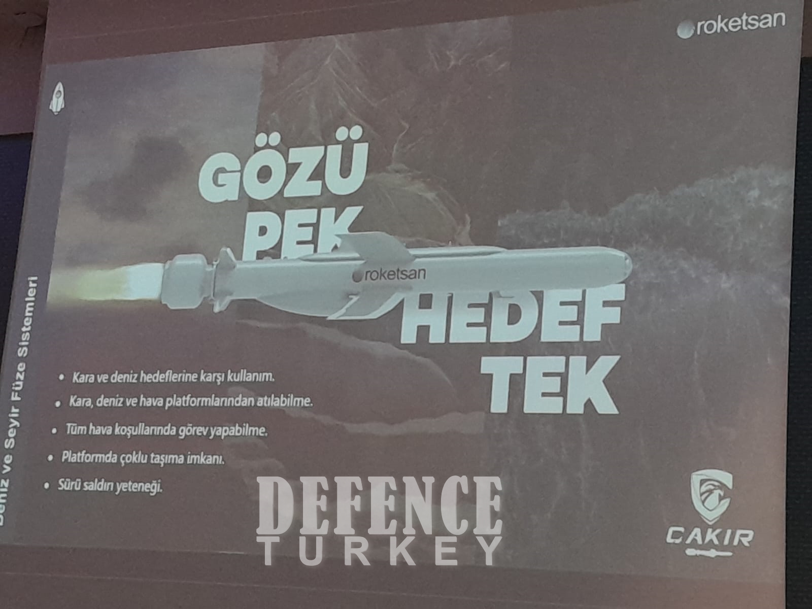 Aralarında Savaş Uçakları (Booster olmadan 4x), Deniz Karakol Uçakları (Booster olmadan 2x) ve Helikopterler (Booster ile 2x), SİHA (Booster olmadan 4x) ve SİDA’ların (Kanisterden atılacak, 4x) da bulunduğu farklı platformlardan Kara ve Deniz hedeflerine karşı kullanılabilecek ve tüm hava koşullarında görev yapabilecek şekilde tasarlanan ÇAKIR Seyir Füzesi Ailesini güçlendirmek üzere Kale Arge ürünü 1.750N itki gücü kapasiteli KTJ-1750 Turbojet Motoru seçilmiş ve ile ilk canlı atış testi Mayıs 2023’de AKINCI TİHA üzerinden başarıyla gerçekleştirilmişti. AKINCI TİHA’dan 7.000m irtifadan atılan (füze atıldıktan sonra bir süre serbest düşüş ile belli irtifaya inmekte ardından TJ motorunu çalıştırarak hedefine doğru yol almakta) ÇAKIR (üzerinde canlı harp başlığı ve IIR Arayıcı Başlık olmadan sadece INS/GPS güdüm ile) Seyir Füzesi Karadeniz’de su üstünde belirlenen hedef koordinata Mach 0.9 sürat ile tam isabetle vuruş kaydetmişti.