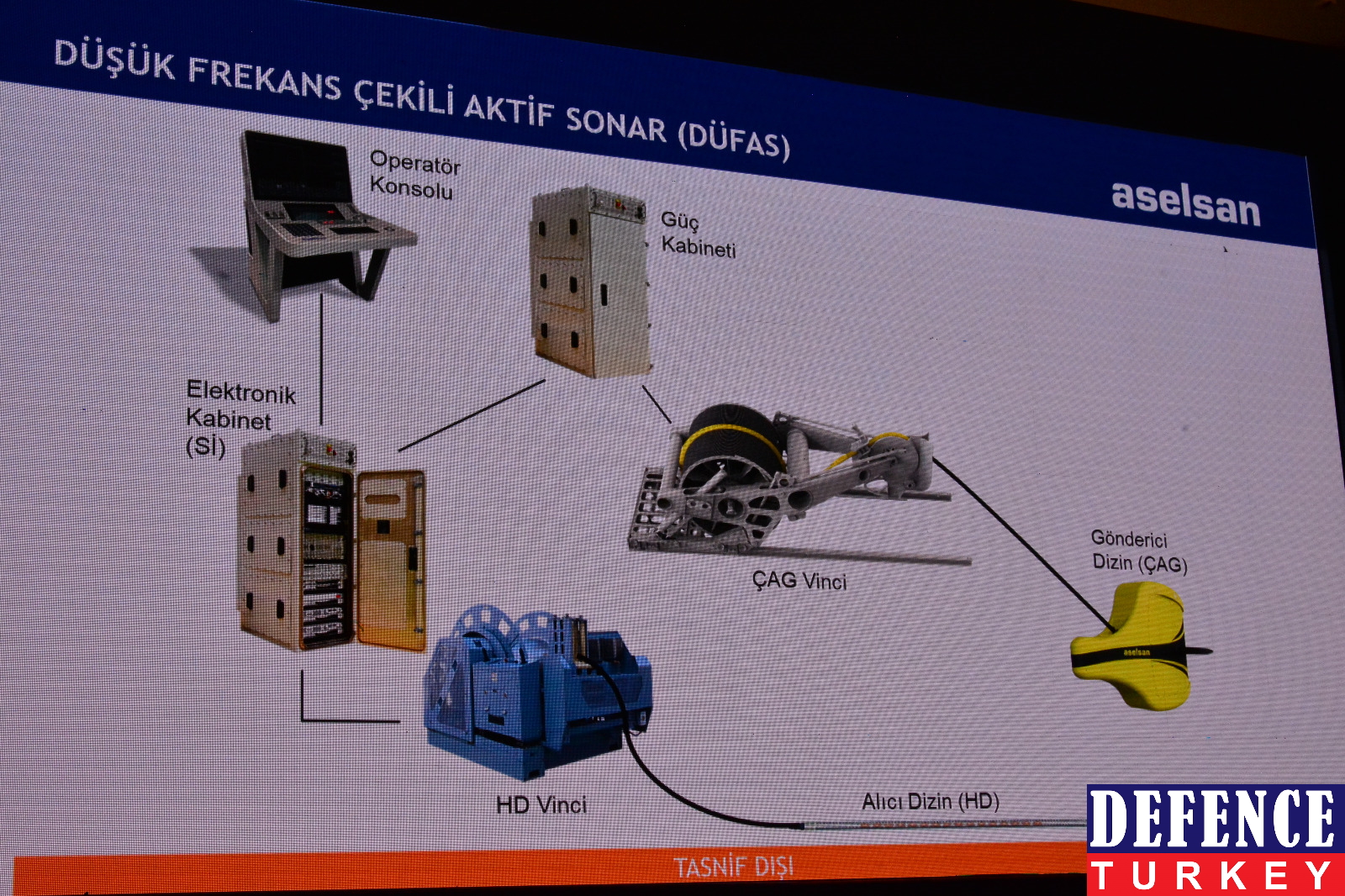 TF-2000 Hava Savunma Harbi (HSH) Muhribinden (GABYA Sınıfı Fırkateynlerin bir bölümüne de takılması planlanıyor) sarkıtılacak DÜFAS, göndereceği çok güçlü aktif sonar yayını sayesinde düşman denizaltısının kendisine ve koruması altındaki konvoy yakınlarına sokulmasını engelleyecektir.