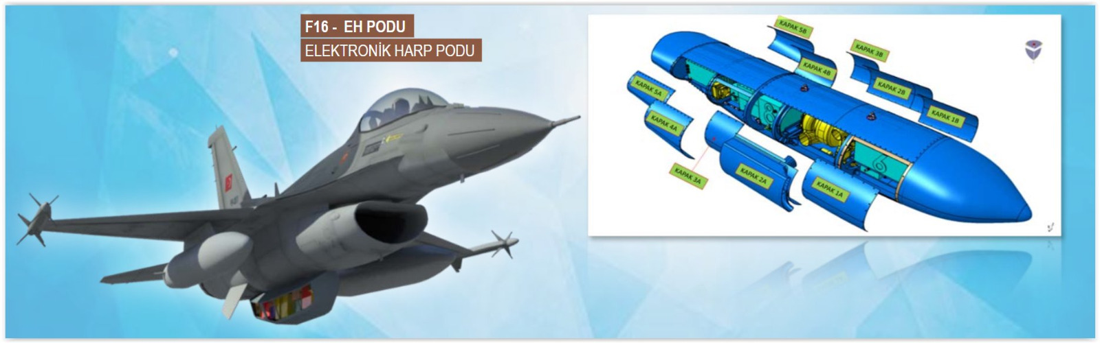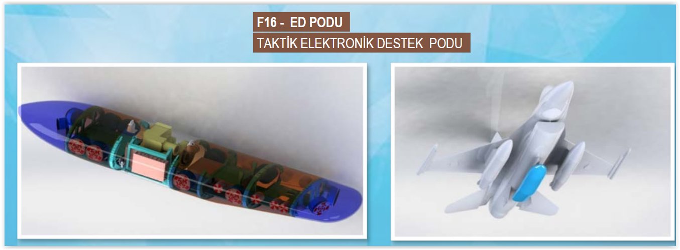 F-16 Uçağı EH Podu (EHPOD) Sistemi Geliştirilmesi Projesi kapsamında seri üretim prototipi olarak üç EHPOD üretilecektir. EHPOD, F-16 Uçağının taarruz, savunma ve müşterek harekât esnasında hava savunma unsurlarına karşı kendini korumasını sağlayacak, harici pod şeklinde tasarlanarak uçağa entegre edilecek, algılama (RWR) ve karıştırma (ECM) özelliklerine sahip, KTAS/CMDS ile koordineli çalışacak ve F-16 Platformunun tüm uçuş profillerinde kendi başına görev yapabilecek bir sistem olarak geliştirilmektedir.