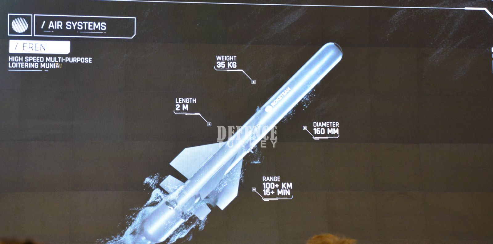 Açıklanan 100+ km’lik menzil EREN’in atıldıktan sonra gidebileceği azami mesafeyi gösteriyor buna hedef takibinde sarf edilecek süre (15 + dk) de dahildir. Yukarıda da ifade ettiğim gibi EREN üzerinde arka tarafta çift yönlü ve kriptolu bir RF Veri Bağı yer alacak, bu sayede EREN atışı yapan hava platformu (AKINCI, TB2, ANKA ve AKSUNGUR SİHA gibi) ile Görüş Hattında (LoS) haberleşebilecek ve uçuş esnasında hedef konumu güncellemesi yapılabilecek. Yüksek Hızlı Çok Maksatlı Dolanan Mühimmat EREN, aynı zamanda kendi kendini imha özelliğine (hava hedeflerine karşı) de sahip olacak. Ağırlıklı olarak hava hedeflerine karşı kullanılması beklenen EREN, yaklaşma sensörü (ön tarafta) ile tetiklenecek parçacık etkili tahrip tipi bir harp başlığı ile donatılmışsa da kara ve hava hedefine karşı iki farklı tipte harp başlığı ile donatılabilecek şekilde tasarlanmıştır. EREN’in harp başlığı icra edilecek görev profiline göre değiştirilebilmektedir.
